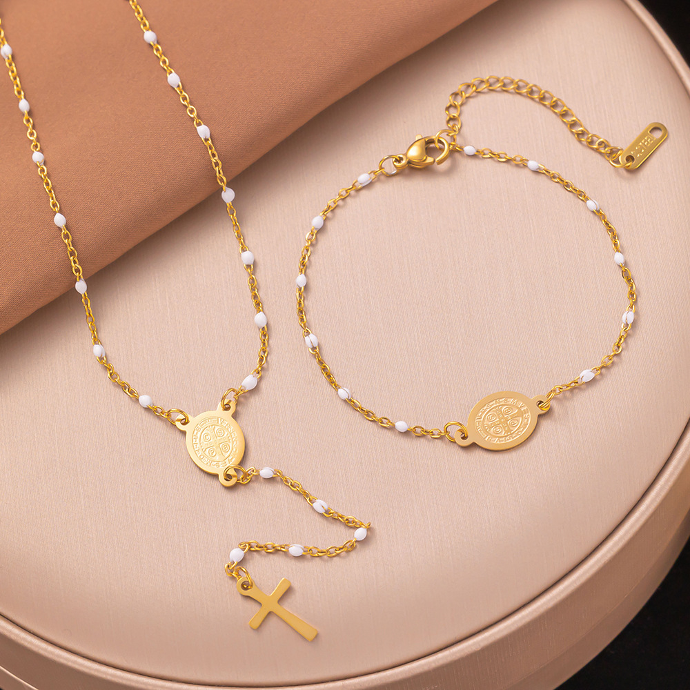 Elegant Women's Gold Plated Trendy Religious Style Unique Link Chain Stainless Steel Letter Pendant Necklace Aesthetic Jewelry